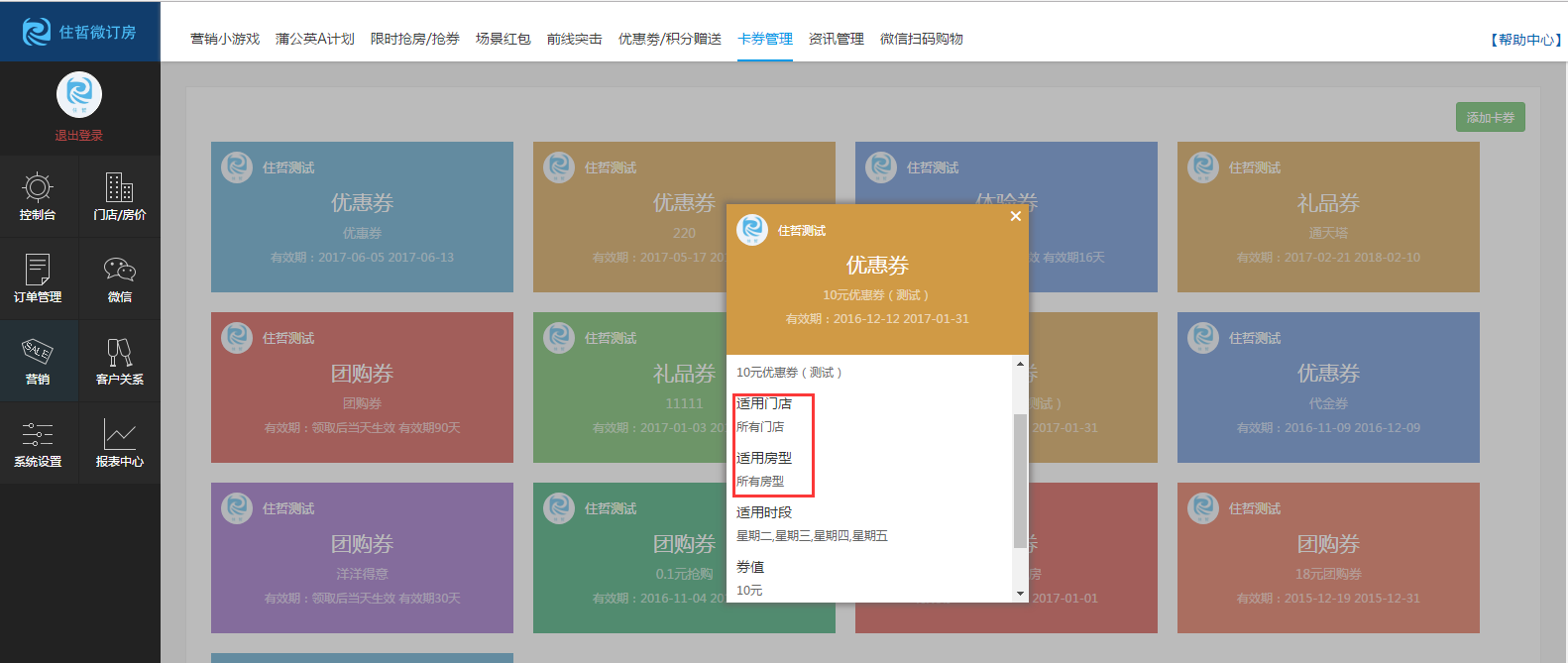 1、确认在房型列表中未设置优惠券金额限制,或设置的金额低于优惠券的金额。