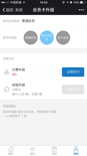 1、我的价格我做主,会员卡支持自助升级(积分或现金)