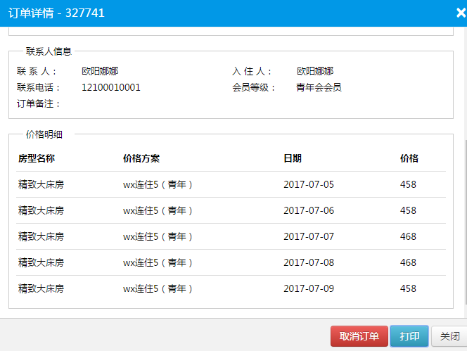 6、后台订单详情页支付查看每日房价明细和价格方案名称