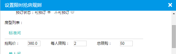 2、请检查是否设置了抢房间数或抢购总数,如下图。