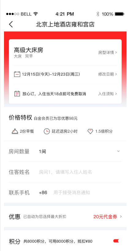 概述:现微订房可支持使用积分抵扣一部分或者全额房费进行预订。