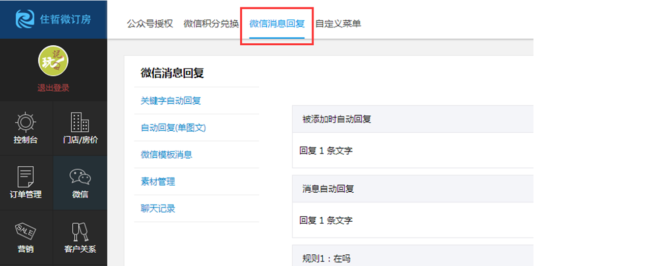 3、微信关键字回复中,将相关功能合并至”微信消息回复“中;