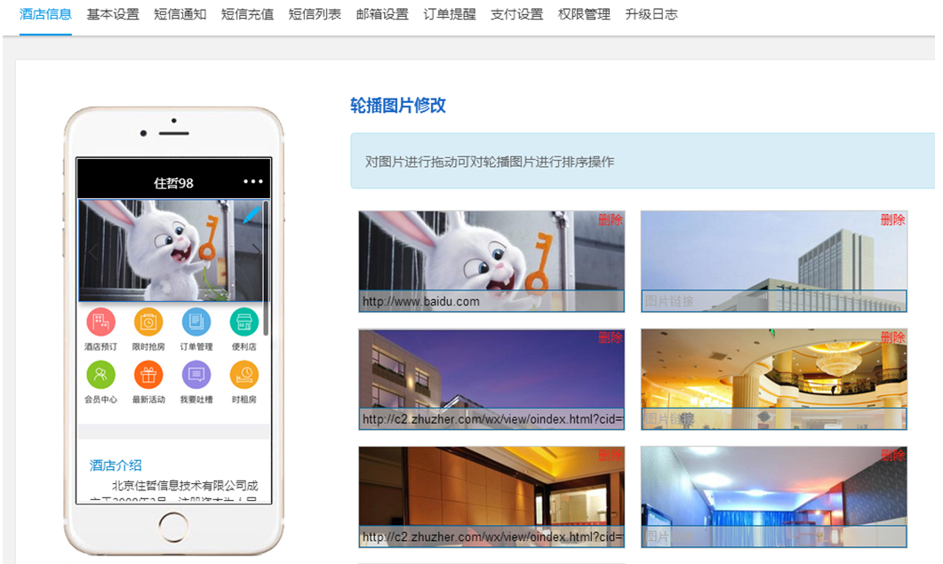 6、酒店信息设置功能调整,能拖动调整banner图片顺序,banner图片支持添加外链;