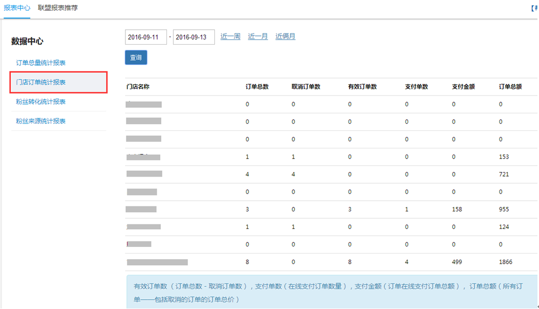 ②门店订单统计报表