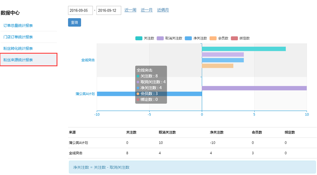 ④粉丝来源统计报表(注:此表0:00生成前一天的数据)