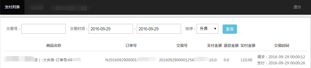 在查询条件中有交易号、交易时间及排序